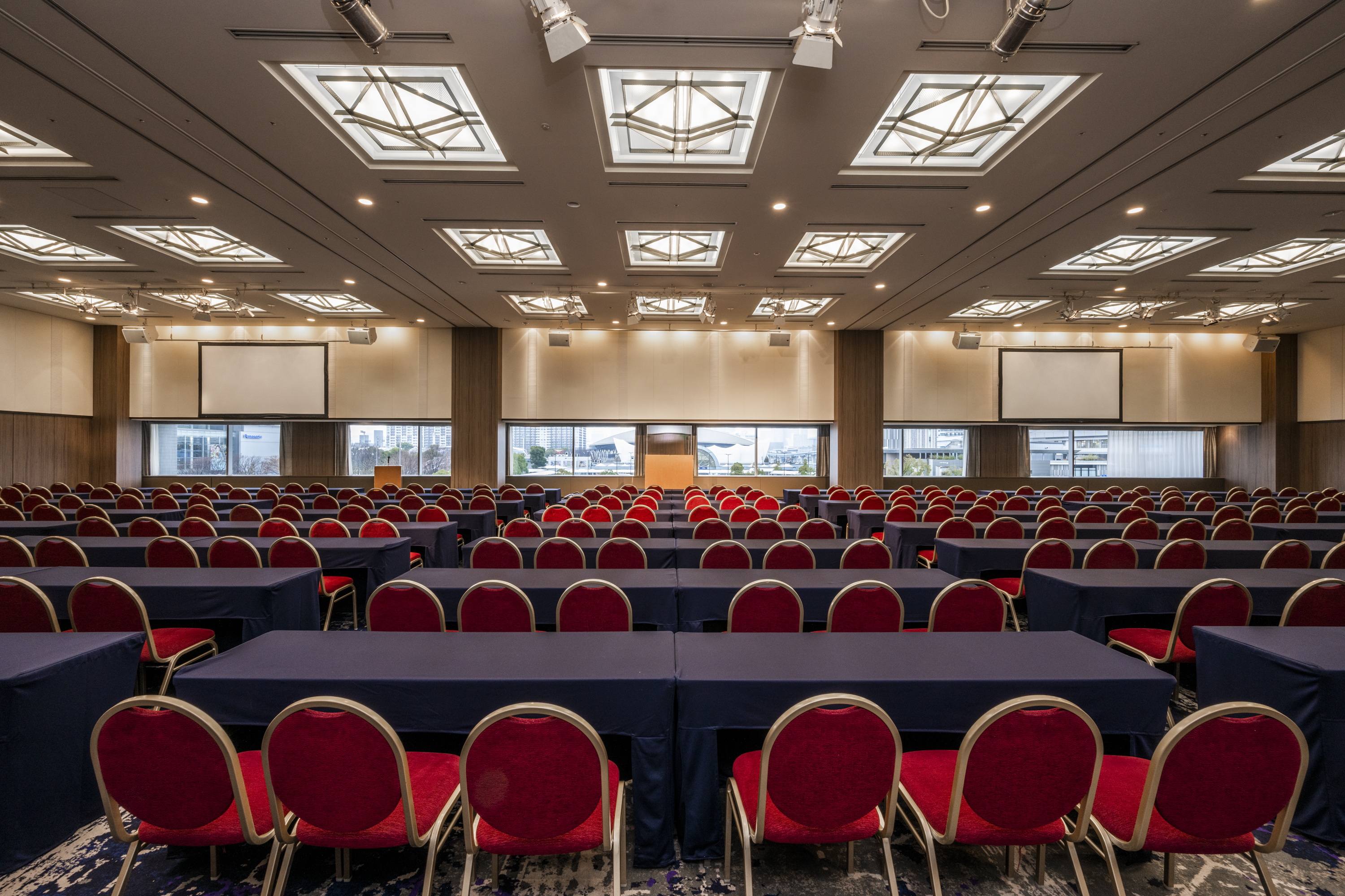 最大500名まで集まれる669㎡のバンケットホール、5.1mの天井高があり大型会議や展示会・大型宴会などの円滑な進行とイベント成功に大きな役割を担います