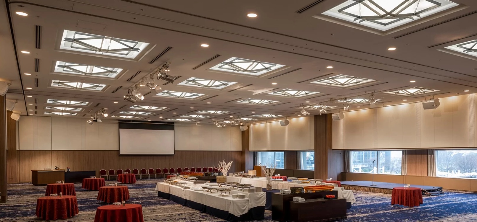 5.1mの天井高があり大型会議や展示会・大型宴会などの円滑な進行とイベント成功に大きな役割を担います