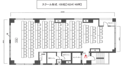 | スクール | シアター | コの字 | ロの字 | 島型 | 立食 | 正賓 | 面積(m²) | 天井高(m) | 形 | 1時間料金(円) | 時間帯料金(円) | |