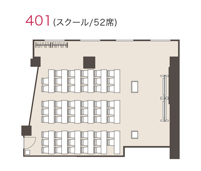 お部屋に設置してある定員数分の机と椅子をご自身でレイアウトして頂きます。